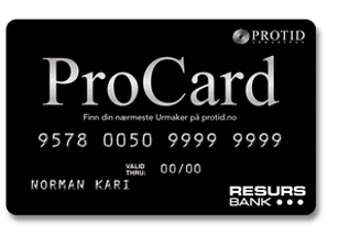 Kanskje finner du en klokke i en av urmakerforretningene våre du liker ekstra godt. Da skal du vite vi kan tilby deg en kostnadsfri faktura som har forfall 30-60 dager etter kjøpet, eller opptil 12 måneders rentefri delbetaling. Med vårt ProCard gjennom Resursbank tilbyr vi gunstig finansiering.
